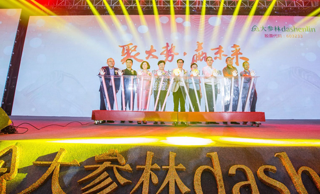 菠菜导航药业集团董事长刘景萍女士与大参林医药集团董事长柯云峰先生、中国医药商业协会执行会长付明仲女士等嘉宾共同开启了“聚大势•赢未来"大参林工商合作峰会的大幕。